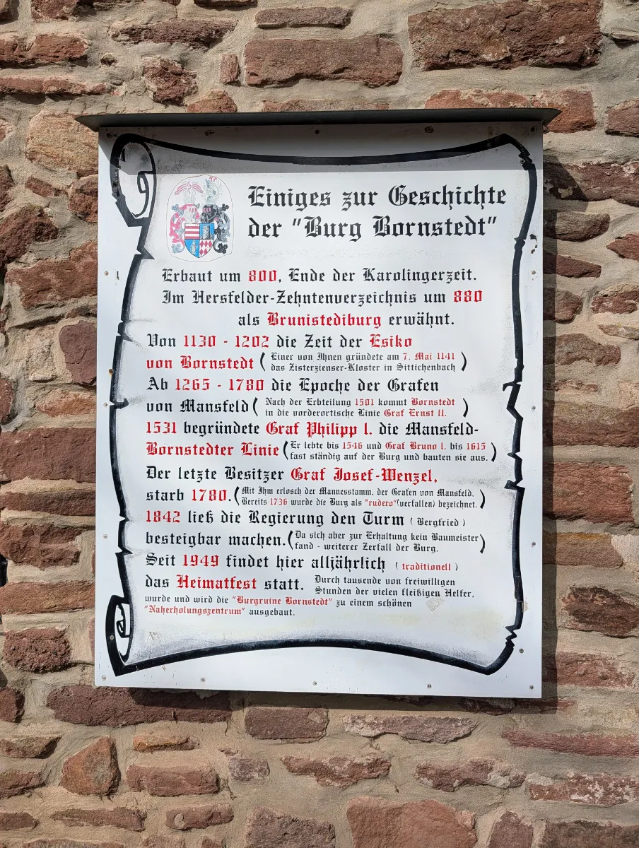 Ab 1120 sind die Herren von Bornstedt als Burgherren urkundlich nachweisbar – ihr erster belegter Vertreter taucht als Zeuge bei der Gründung des Klosters Kaltenborn auf. 1115 hatte Kaiser Heinrich V. die Burg als Truppenstützpunkt während der Sachsenkriege genutzt, kurz vor der Schlacht am Welfesholz. Esico von Bornstedt gründete 1141 das Zisterzienserkloster Sittichenbach in der Nähe. Für eine Burg in einem kleinen Dorf ist das eine beachtliche Reichweite.