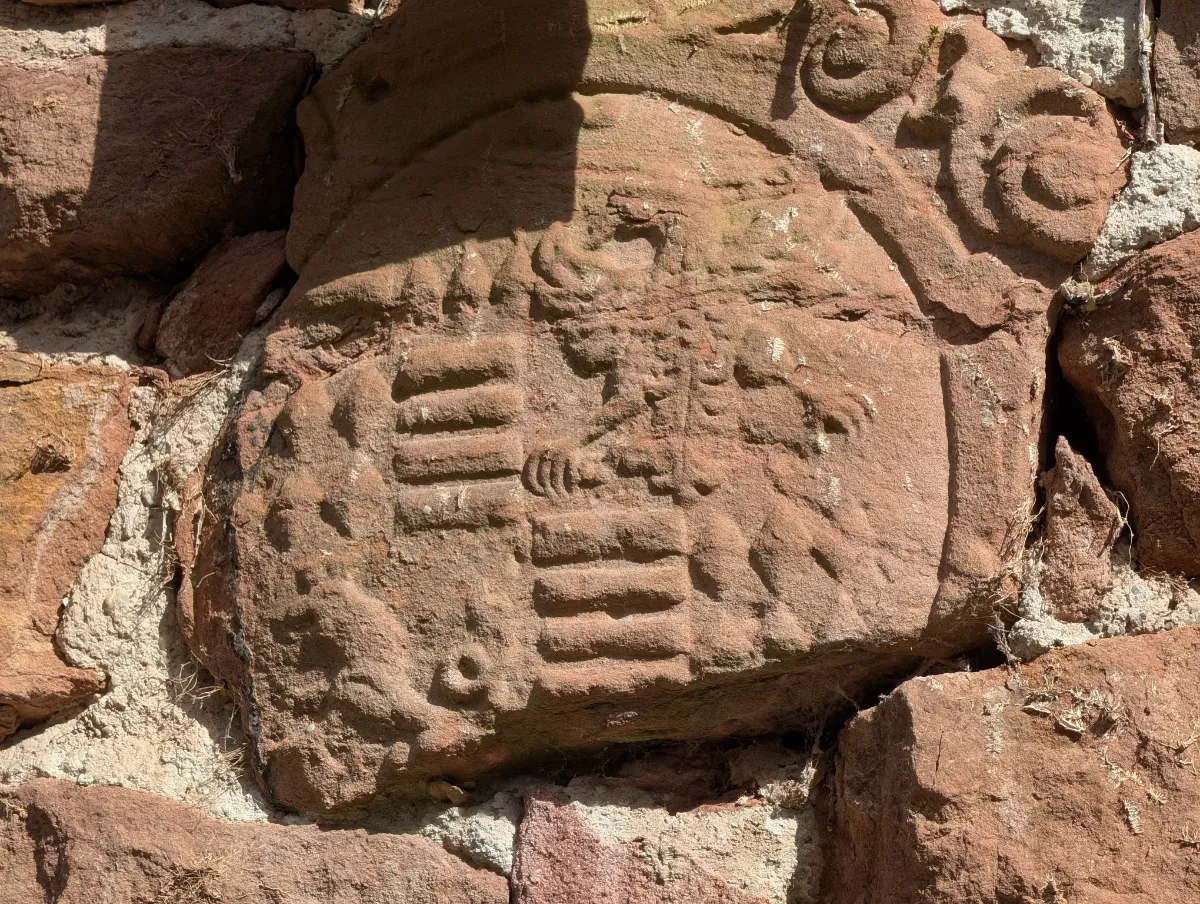 Auf dem Burghof gibt es einiges zu entdecken, wenn man genauer hinschaut: einen Wappenstein mit der Aufschrift „Schloss Bornstedt, Wappen der ehemaligen Grafschaft Mansfeld und Querfurt“, eine alte Glocke, Steinreliefs im Sandsteinmauerwerk. Tische, Bänke und eine Bühne stehen bereit – seit 1949 findet hier das Bornstedter Dorffest statt, seit 1969 als Heimatfest. Kein Museum, kein Eintritt, keine Audioführung. Man schaut einfach.