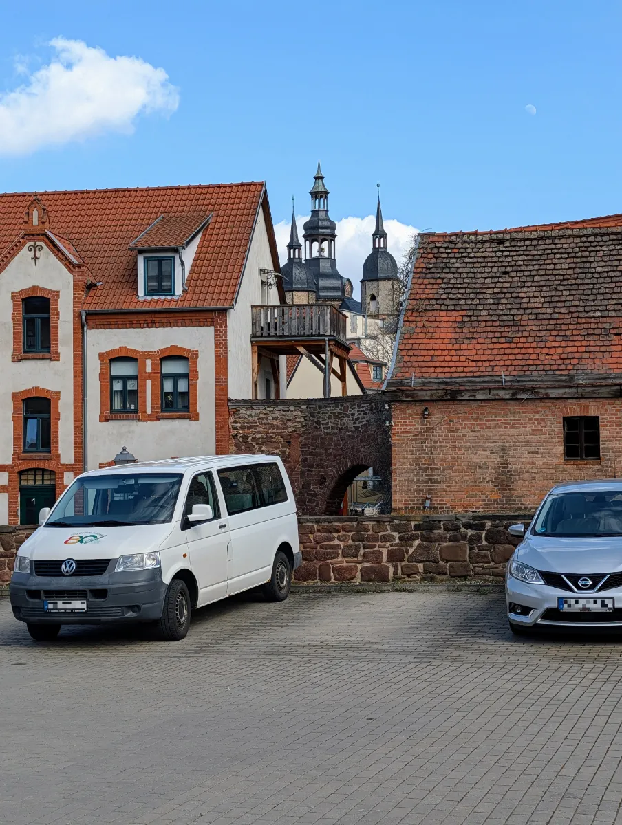 Eigentlich wollten wir nur die zwei Autos wegretouchieren, die uns auf dem schönsten Parkplatz Eislebens den Blick auf die St.-Andreas-Kirche versaut haben. Ein VW-Bus und ein Nissan vor einer 500 Jahre alten Kulisse – man muss das nicht haben.