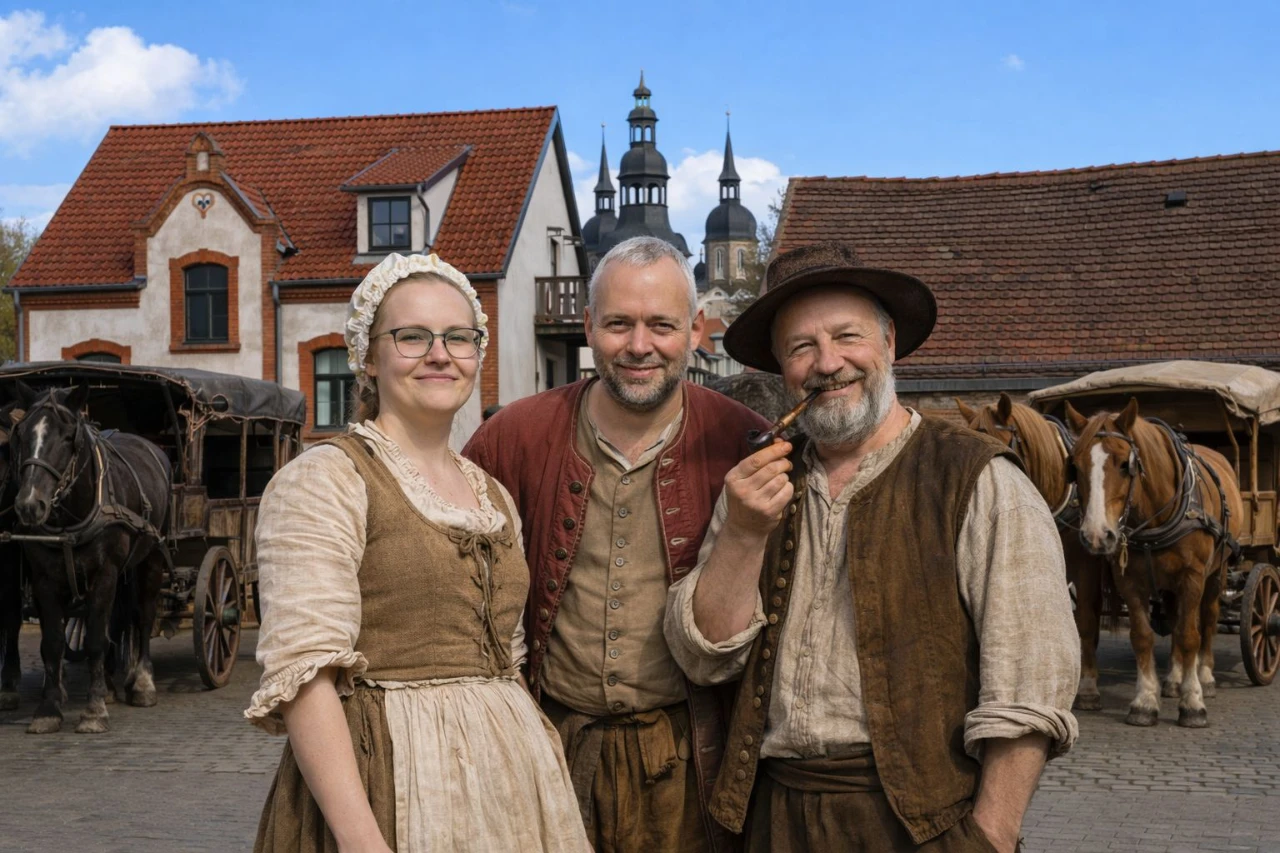 Also rein in die KI, Pferde und Kutschen rein, diese dann bitte noch abgeranzter und natürlich die Blechkarosserien raus. Sah gleich viel besser aus. Und dann dachten wir: Wenn schon, denn schon. Wir wollen auch aufs Foto für den Freitags-Facebook-Post.